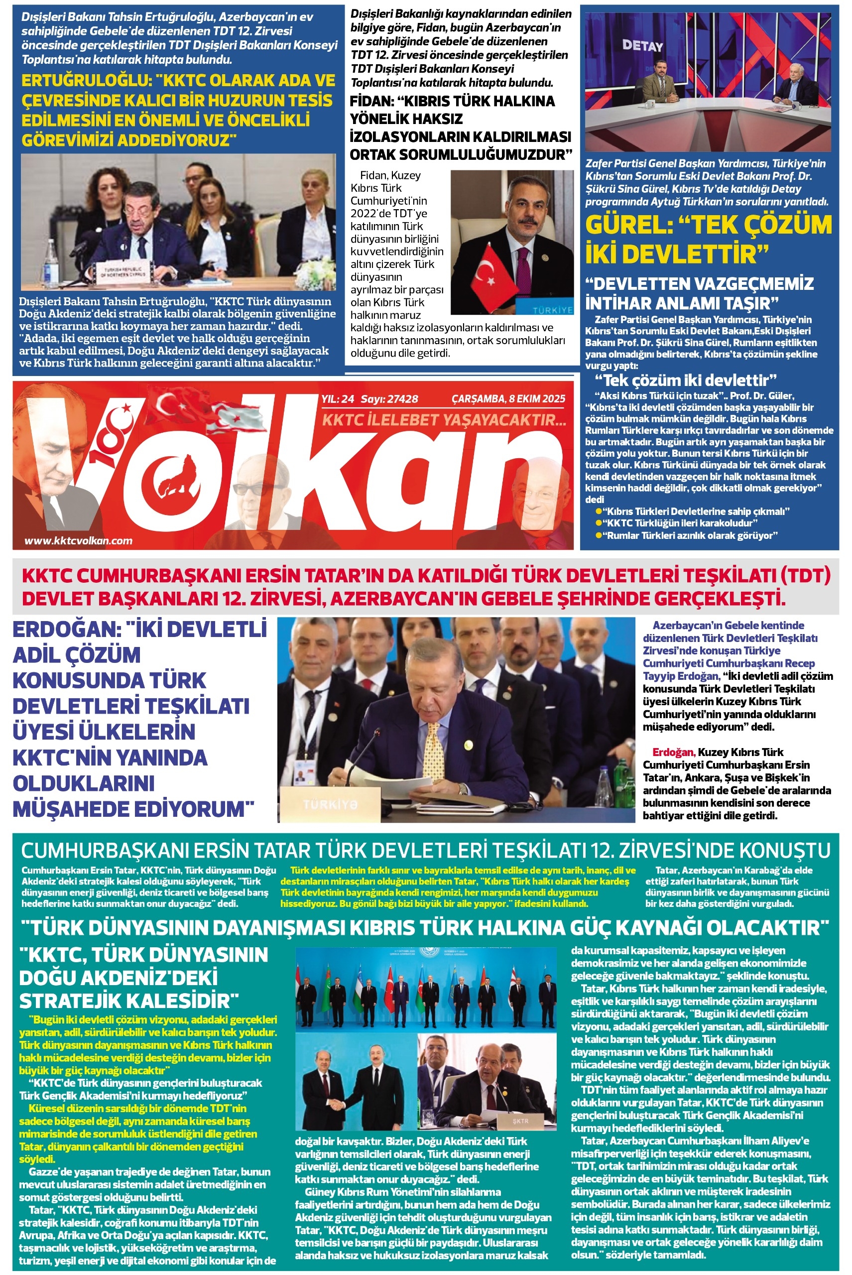 ERDOĞAN: "İKİ DEVLETLİ ADİL ÇÖZÜM KONUSUNDA TÜRK DEVLETLERİ TEŞKİLATI ÜYESİ ÜLKELERİN KKTC'NİN YANINDA OLDUKLARINI MÜŞAHEDE EDİYORUM." ...