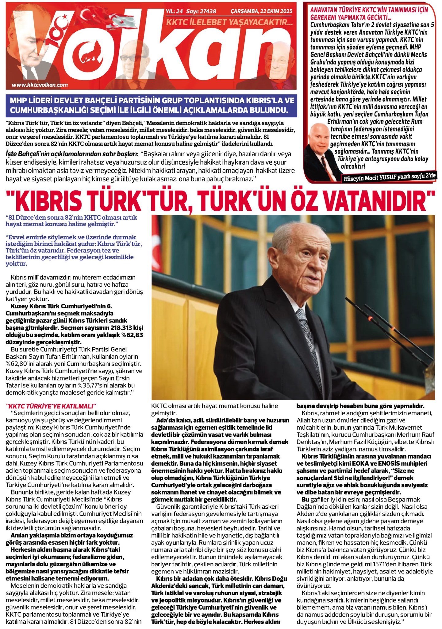 VOLKAN GAZETESİ 25. YAYIN YILINA GİRDİ : MİLLÎ DAVA ÇİZGİSİYLE YOLA DEVAM ... +Detaylı Bilgi