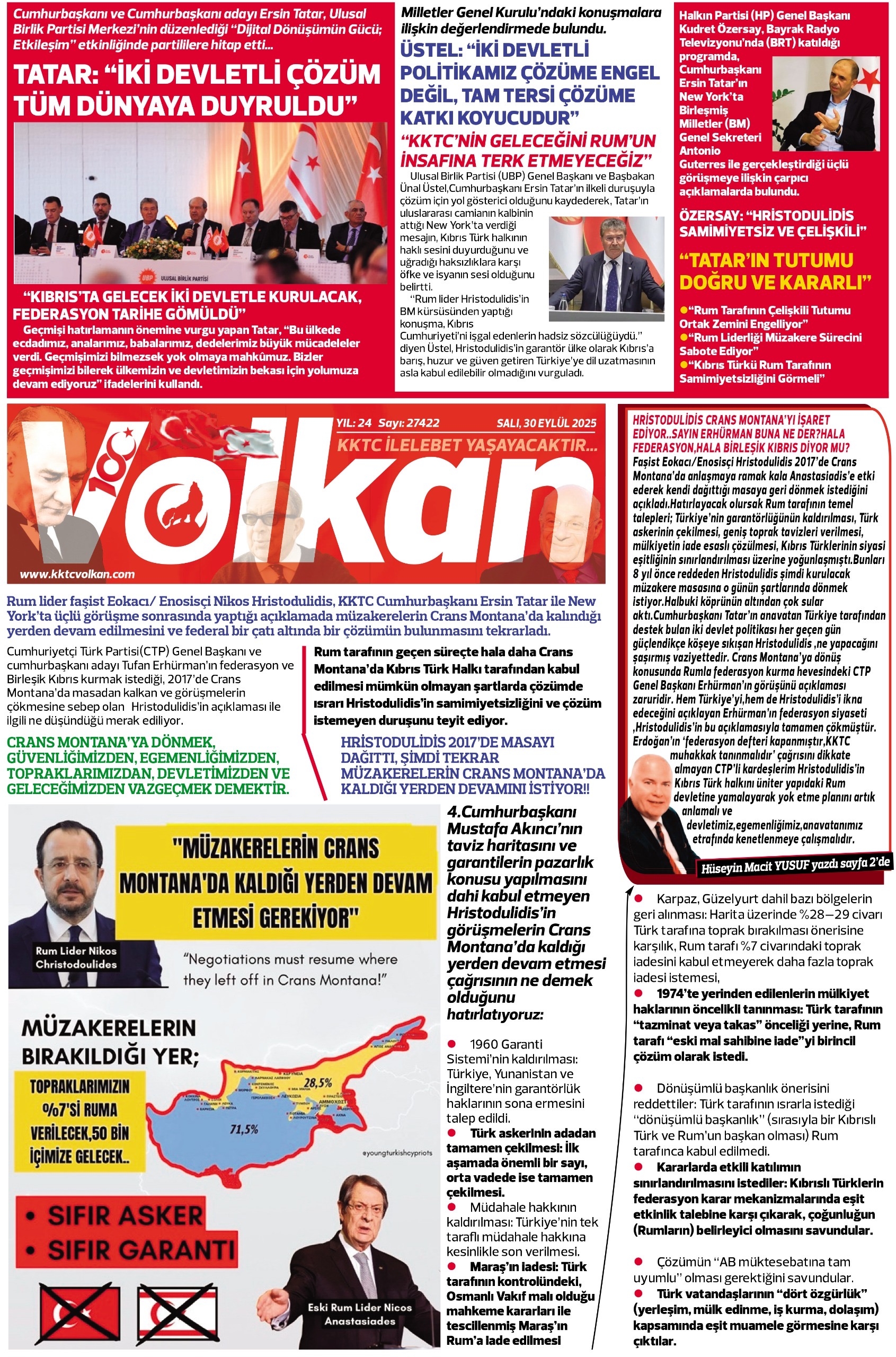 Rum lider faşist Eokacı/ Enosisçi Nikos Hristodulidis, KKTC Cumhurbaşkanı Ersin Tatar ile New York’ta üçlü görüşme sonrasında yaptığı açıklamada müzakerelerin Crans Montana’da kalındığı yerden devam edilmesini ve federal bir çatı altında bir çözümün bulunmasını tekrarladı.