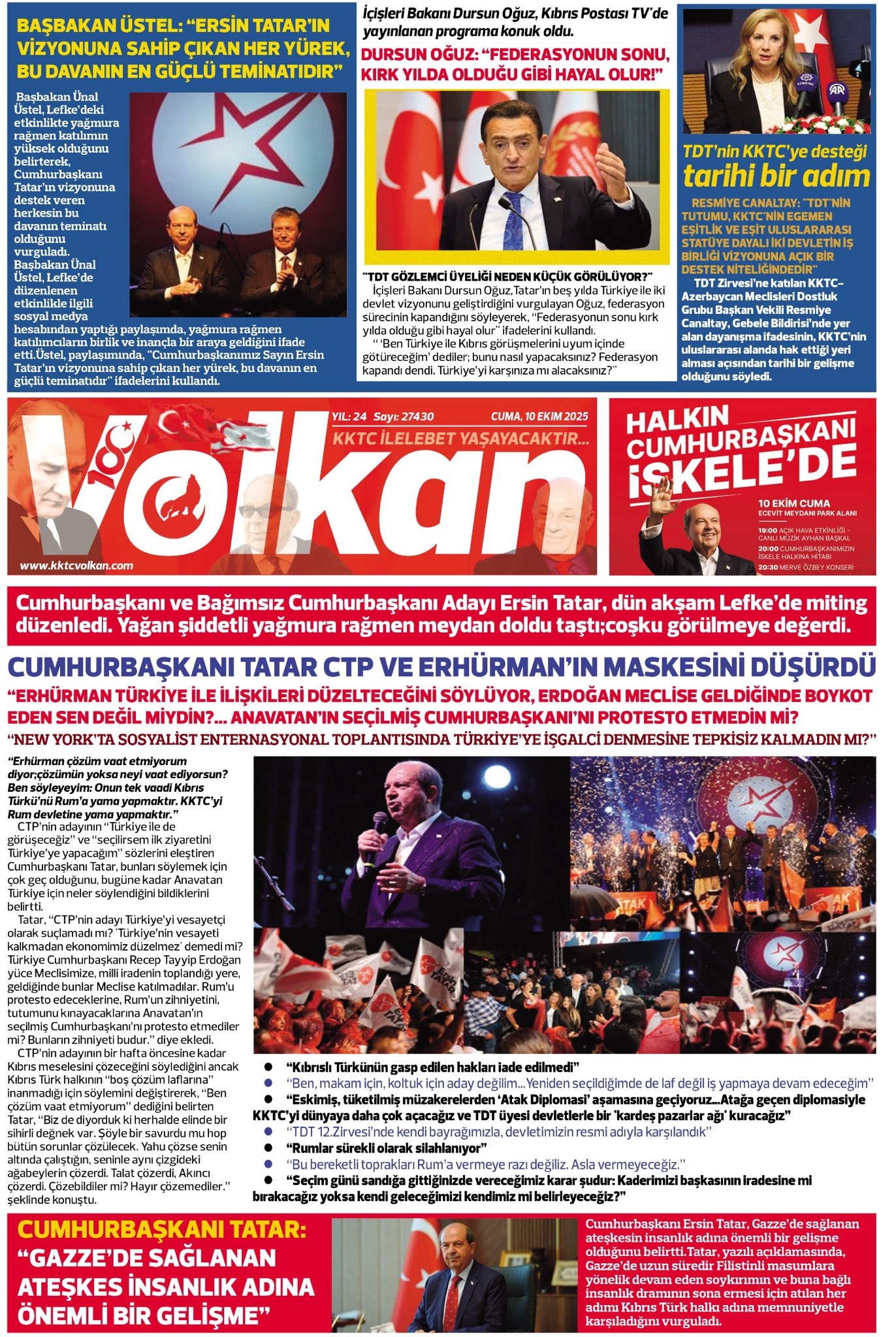 “Bir de çıkmışlar barış güvercini pozu kesiyorlar. Ağzında İsrail füzesi taşıyan barış güvercini olur mu?” diye konuştu. Rum tarafının agresif tavırlarına dikkat çeken Tatar, “Mayıs 2026’da Rum tarafında genel seçimler var. Rum tarafındaki faşist ve ırkçı parti ELAM şu anda üçüncü parti durumunda. Çıkan kamuoyu anketlerine bakıyoruz, seneye belki de ikinci parti konumuna gelecekler.