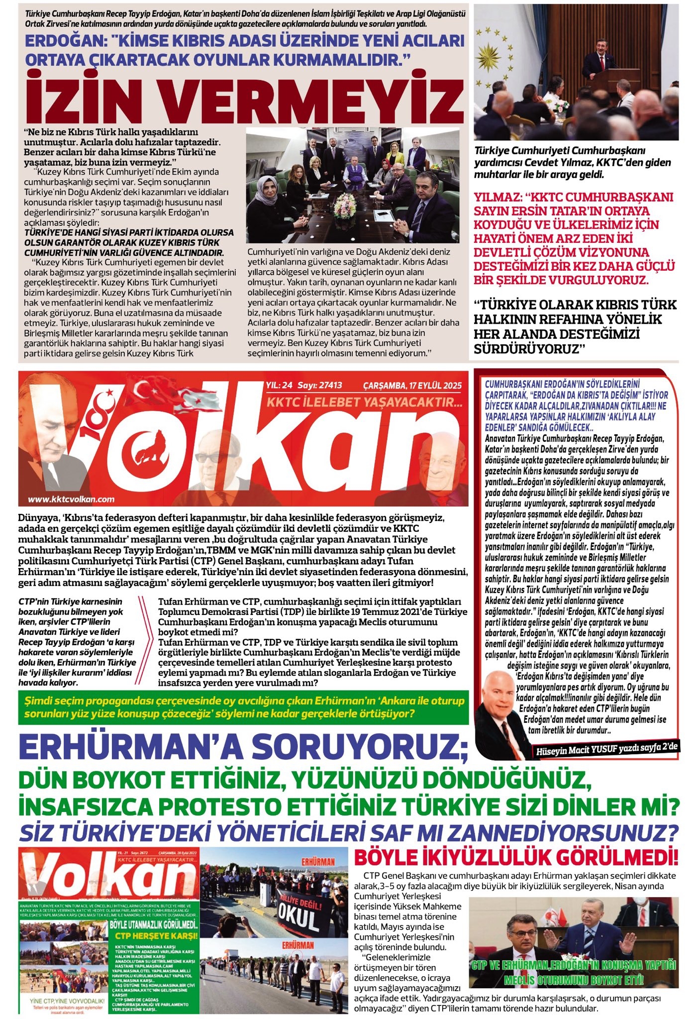 Dünyaya, ‘Kıbrıs’ta federasyon defteri kapanmıştır, bir daha kesinlikle federasyon görüşmeyiz, adada en gerçekçi çözüm egemen eşitliğe dayalı çözümdür iki devletli çözümdür ve KKTC muhakkak tanınmalıdır’ mesajlarını veren ,bu doğrultuda çağrılar yapan Anavatan Türkiye Cumhurbaşkanı Recep Tayyip Erdoğan’ın,TBMM ve MGK’nin milli davamıza sahip çıkan bu devlet politikasını Cumhuriyetçi Türk Partisi (CTP) Genel Başkanı, cumhurbaşkanı adayı Tufan Erhürman’ın ‘Türkiye ile istişare ederek, Türkiye’nin iki devlet siyasetinden federasyona dönmesini, geri adım atmasını sağlayacağım’ söylemi gerçeklerle uyuşmuyor; boş vaatten ileri gitmiyor!