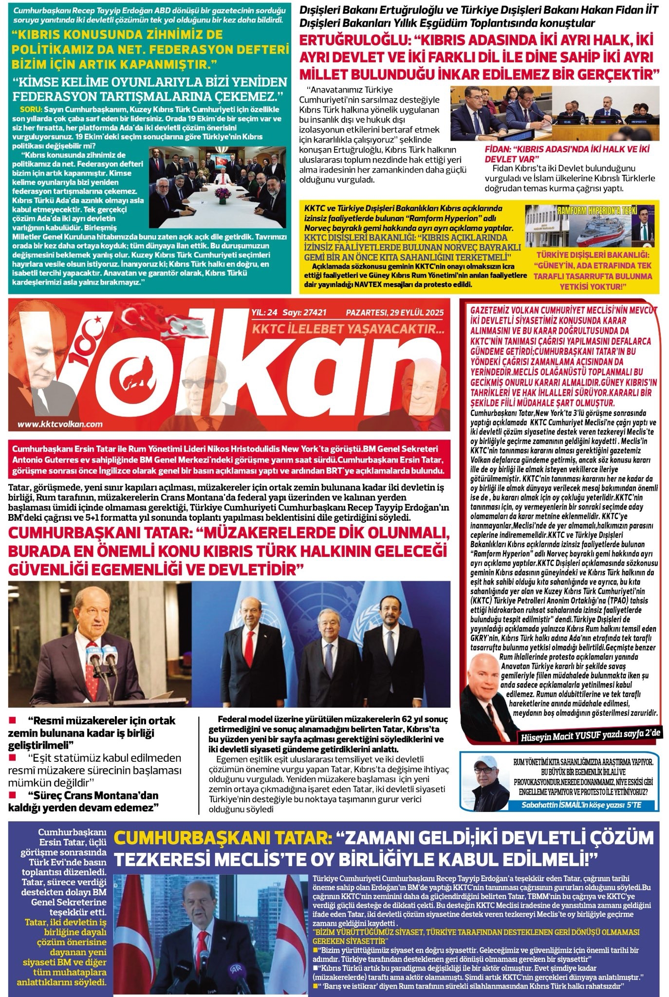 Erdoğan’a teşekkür eden ve BM’deki, KKTC’nin tanınma çağrısı ile haksız izolasyonların kaldırılması çağrısının önemine vurgu yapan Tatar, “Kıbrıs Türk halkı eşit karşılıklı saygı ve devlet çatısı altında yaşamak istiyor” dedi.
